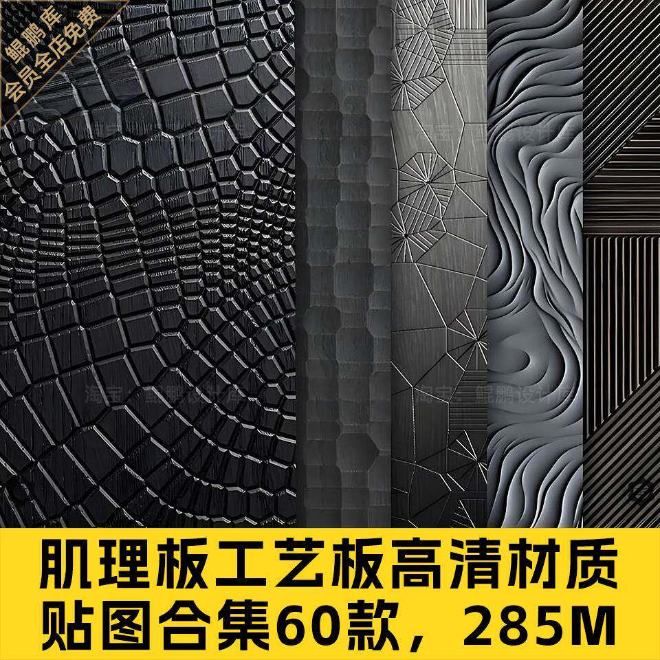 肌理板SU贴图原实木3D浮雕面波浪纹烤漆柜门墙板橡木饰面材质素材