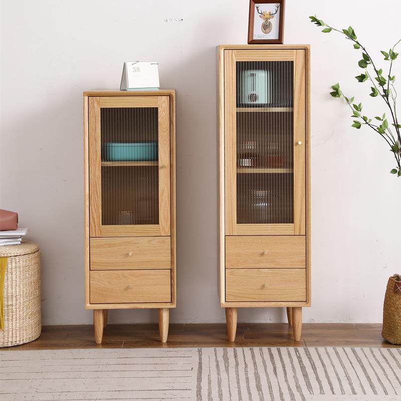 白橡木高低酒柜现代樱桃木玻璃柜门墙边柜全实木客厅带抽屉储物柜