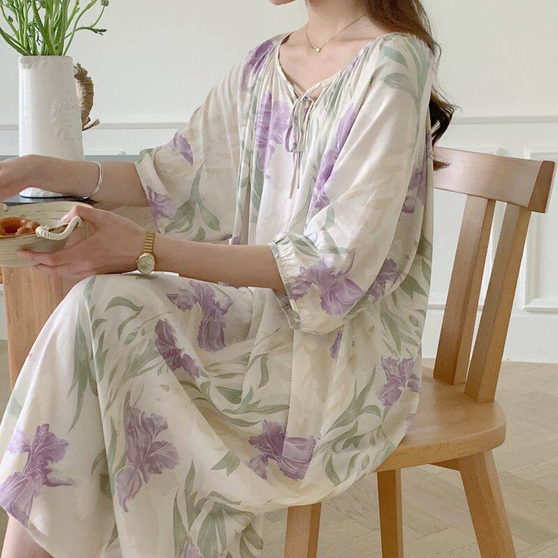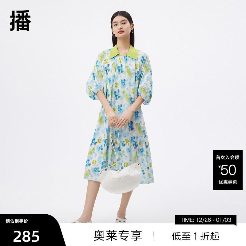 - 小四原创 欧洲站秋冬装新款碎花加绒加厚雪纺中长款打底连衣裙女