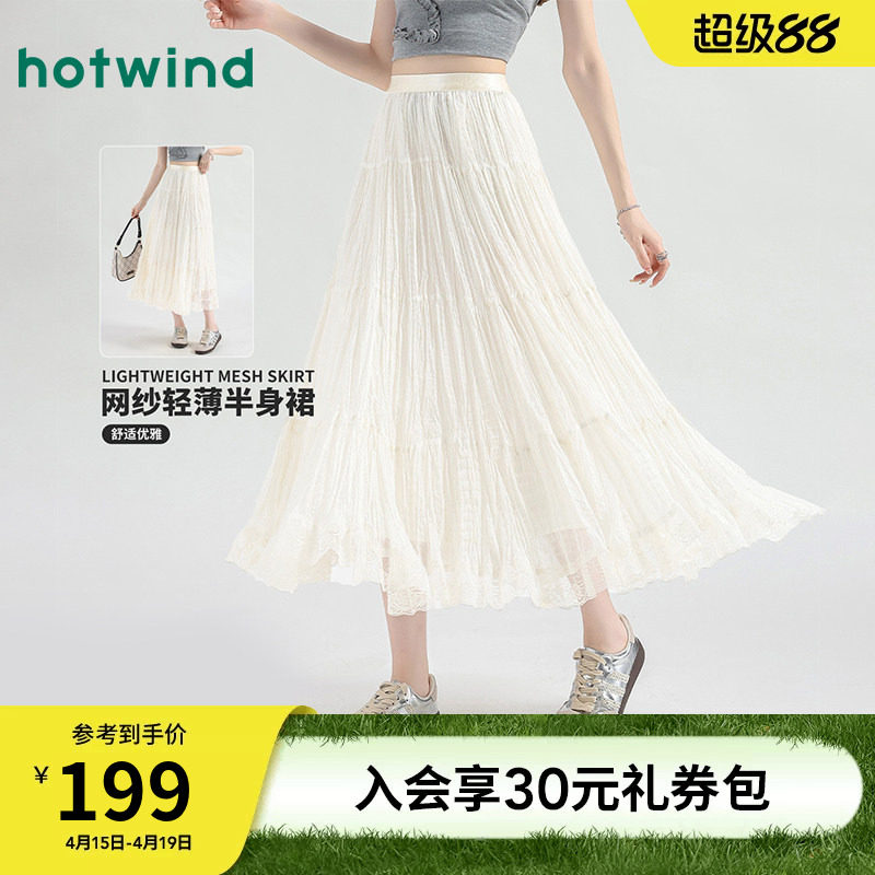 热风春夏度假风沙滩飘逸欧若风网纱大摆显瘦中长半裙时尚百搭休闲