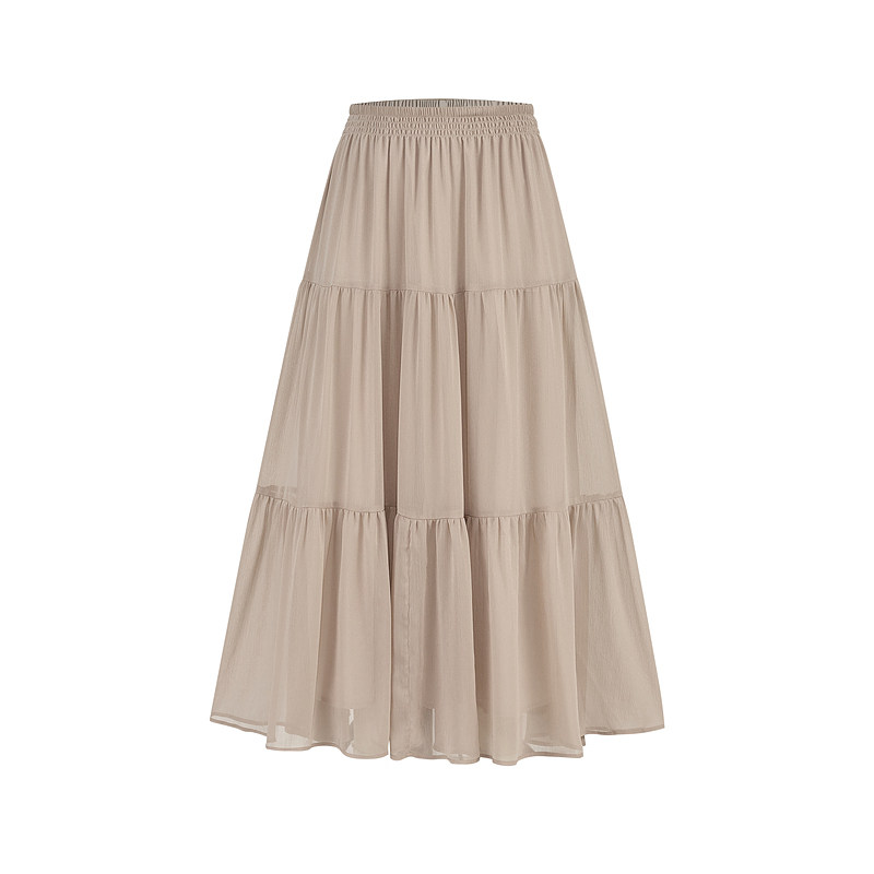夏季新款高腰松紧纯色雪纺百褶半身裙长裙女中长款垂感度假沙滩裙