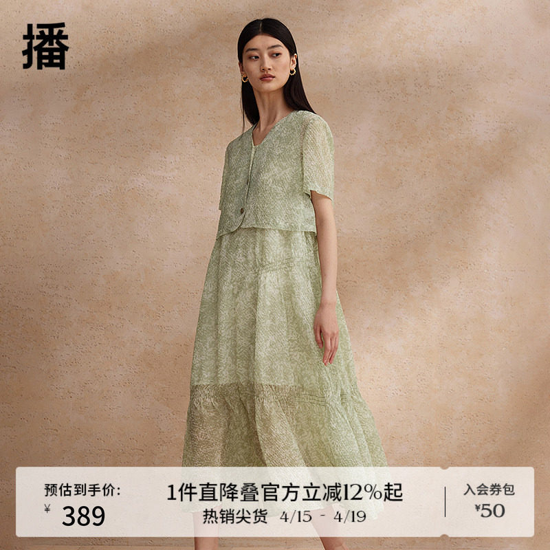 播碎花连衣裙女商场同款2024夏中长款沙滩度假鱼尾裙BDR2LD1661
