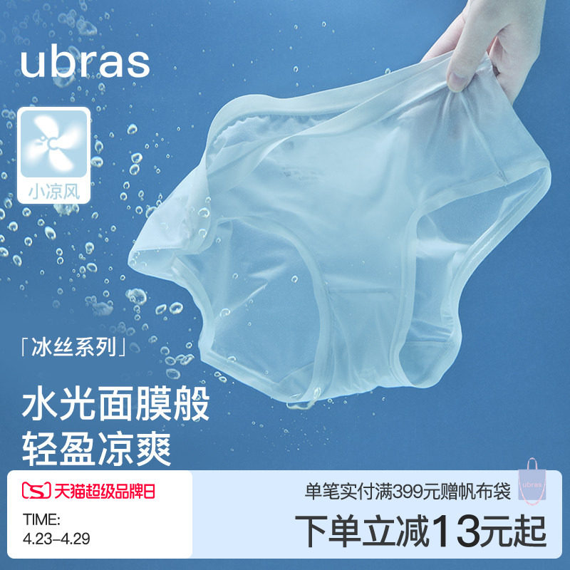 ubras夏季超薄冰丝面膜内裤女隐形舒适纯棉抗菌裆中腰三角裤透气