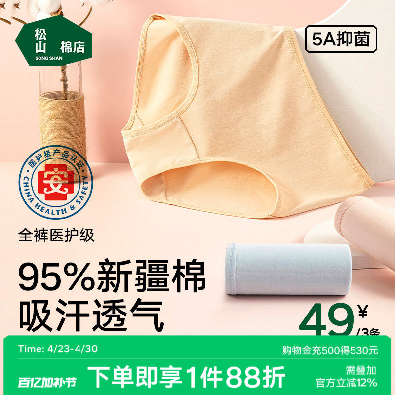 松山棉店女士纯棉中腰内裤加长裆裸睡透气不夹臀新疆棉女生三角裤