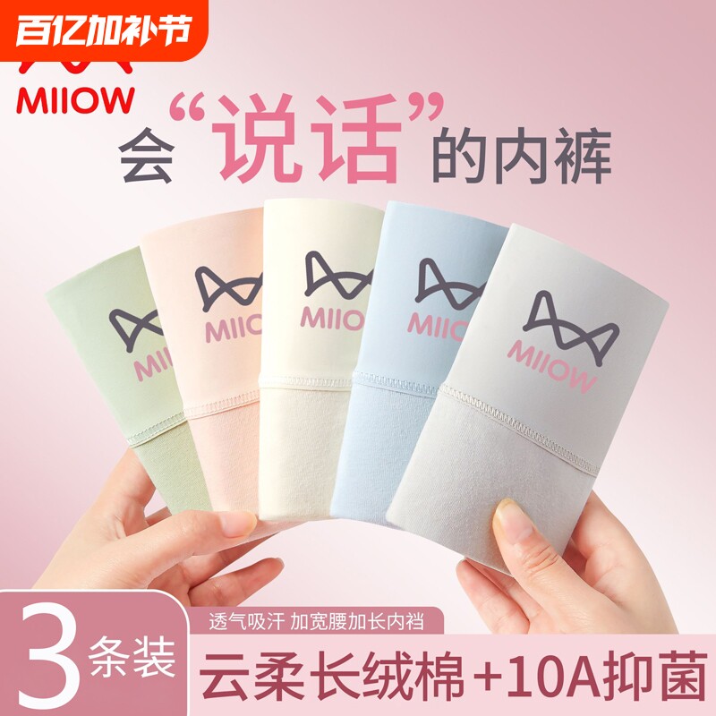 猫人内裤女士纯棉10A抗菌裆加长中腰无痕透气少女生新款三角短裤