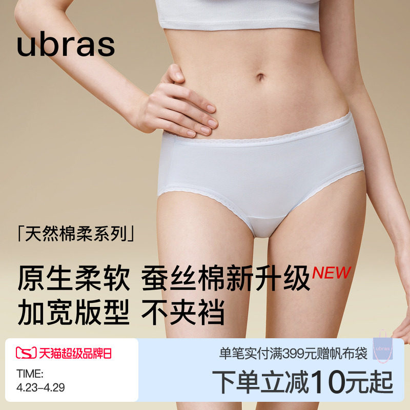 ubras60S纯棉内裤女士新疆蚕丝棉透气7A抗菌加长底裆中腰三角裤