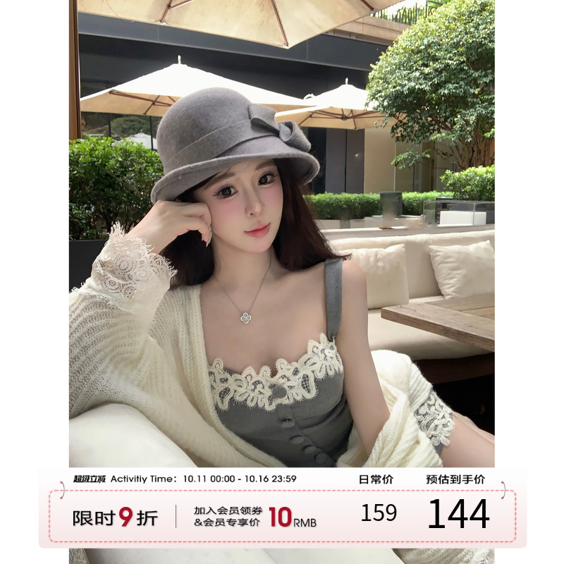 紫涵无袖背心连衣裙女冬季新款蝴蝶结甜美学院风叠穿中长款a字裙