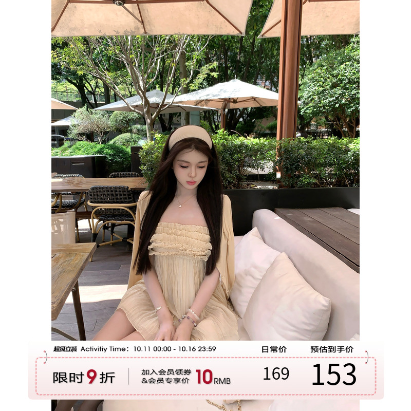 项天鹅er 一字肩抹胸连衣裙女2025秋季雪纺吊带a字裙无袖气质裙子