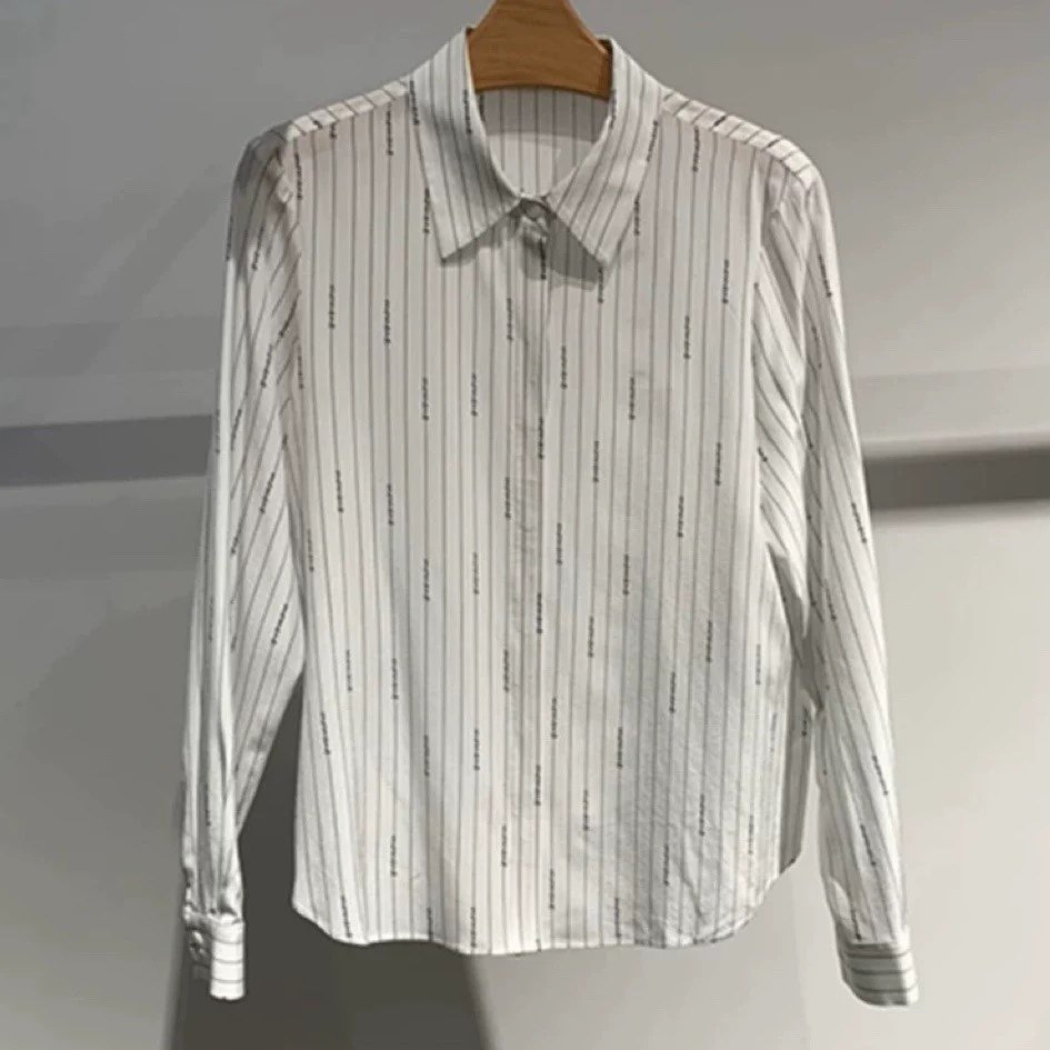 衬衫 POLO领单排扣字母印花竖条纹桑蚕丝休闲百搭长袖女 衬衫0.18