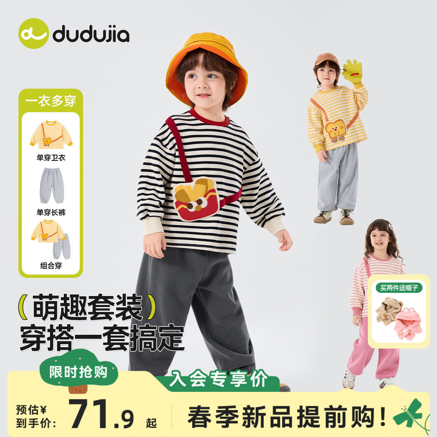 【三件装】嘟嘟家男童套装女童马甲儿童T恤宝宝裤子童装上衣长裤