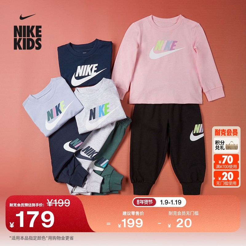 耐克婴童长袖T恤和法式毛圈长裤套装春季新款男童宝宝NIKE IU5427