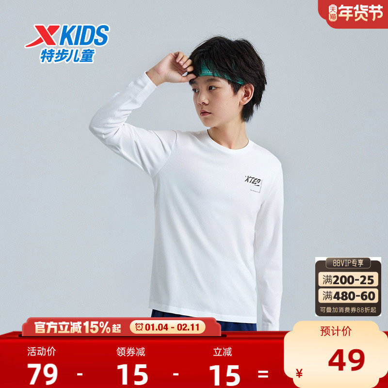 特步童装男童亲肤长袖T恤秋季新款儿童休闲上衣小中大童运动长t