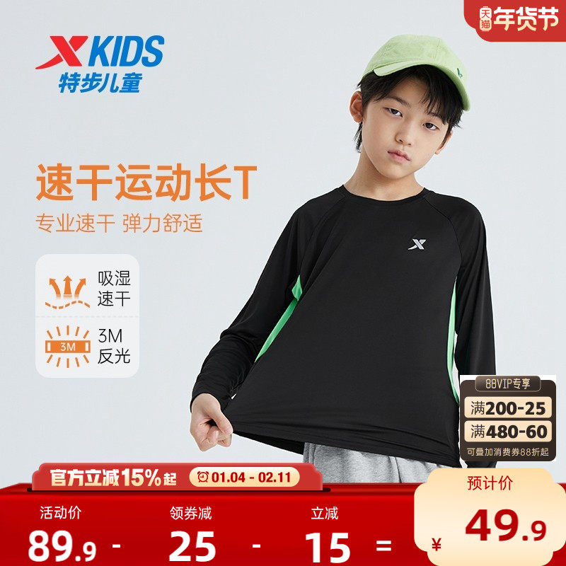 特步童装男童速干长袖T恤2025秋冬新款儿童防晒上衣中大童运动长t