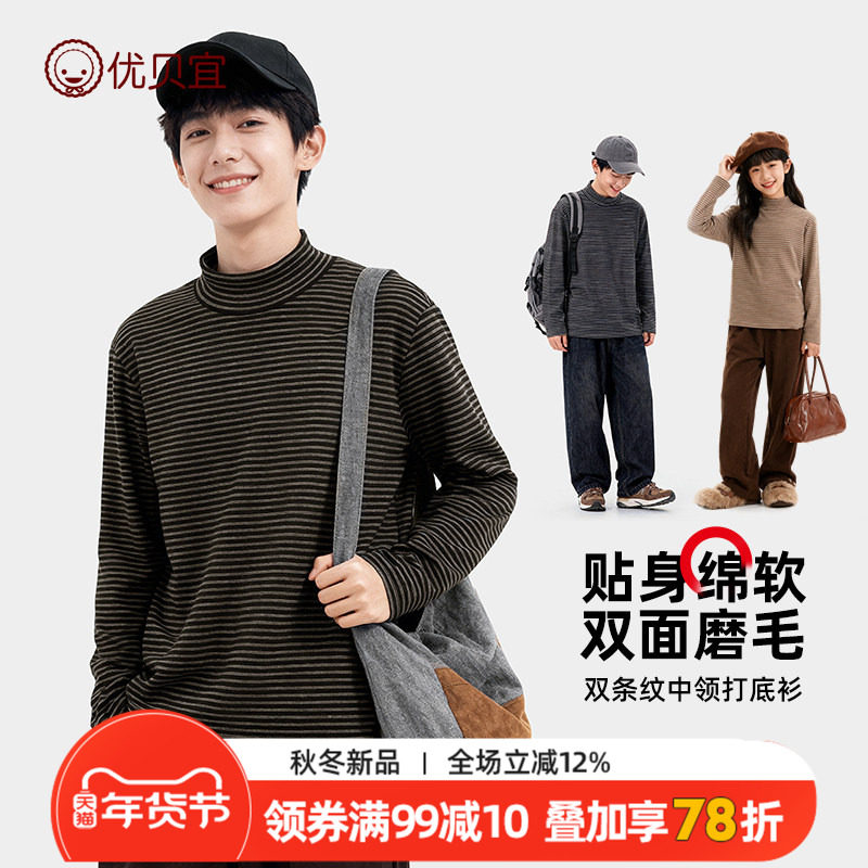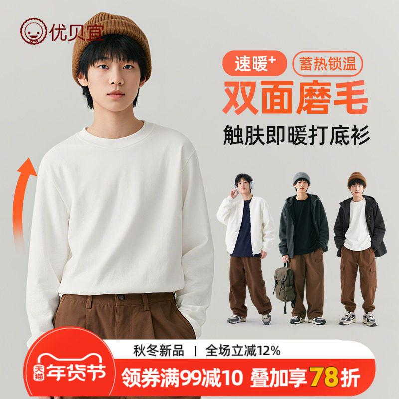 优贝宜儿童打底衫秋冬纯色青少年男童长袖T恤女童保暖上衣长t童装