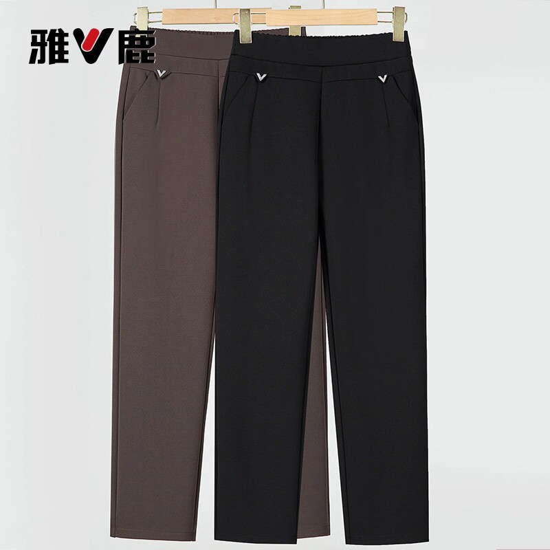 雅鹿妈妈裤春秋加厚休闲女裤子高腰秋冬加绒中年长裤中老年直筒裤