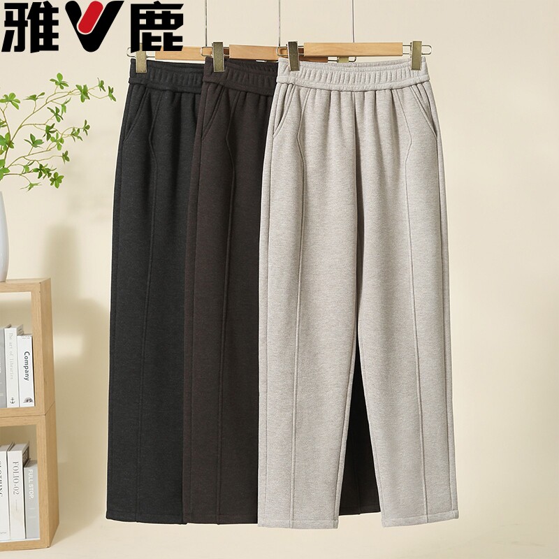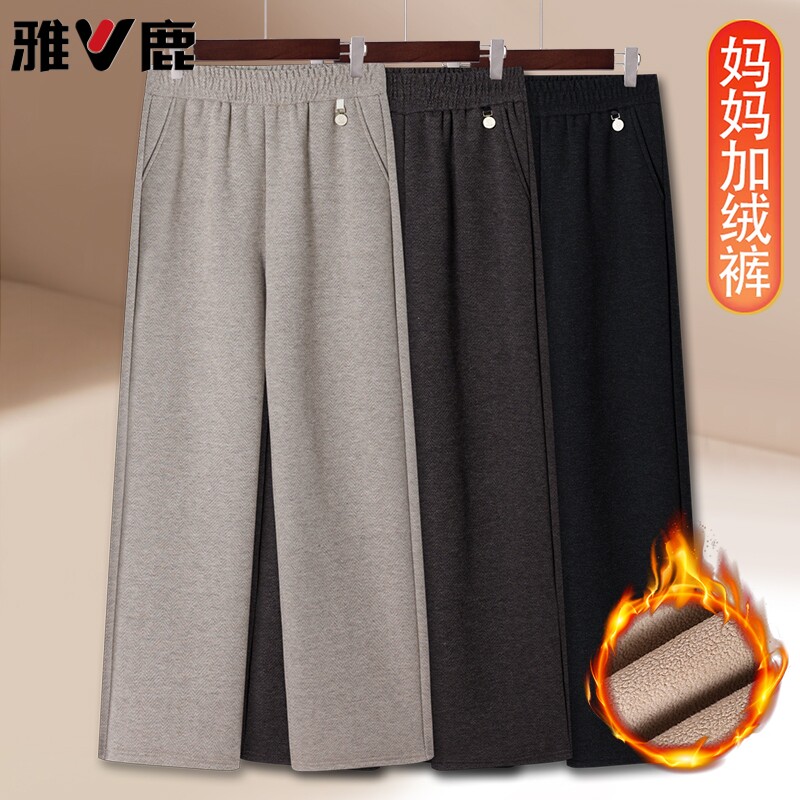 雅鹿妈妈裤子秋冬加绒宽松直筒奶奶裤中老年人女裤老太太春秋长裤