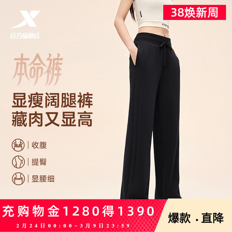 特步本命裤丨阔腿直筒裤女裤春季新款宽松高腰卫裤休闲运动长裤子