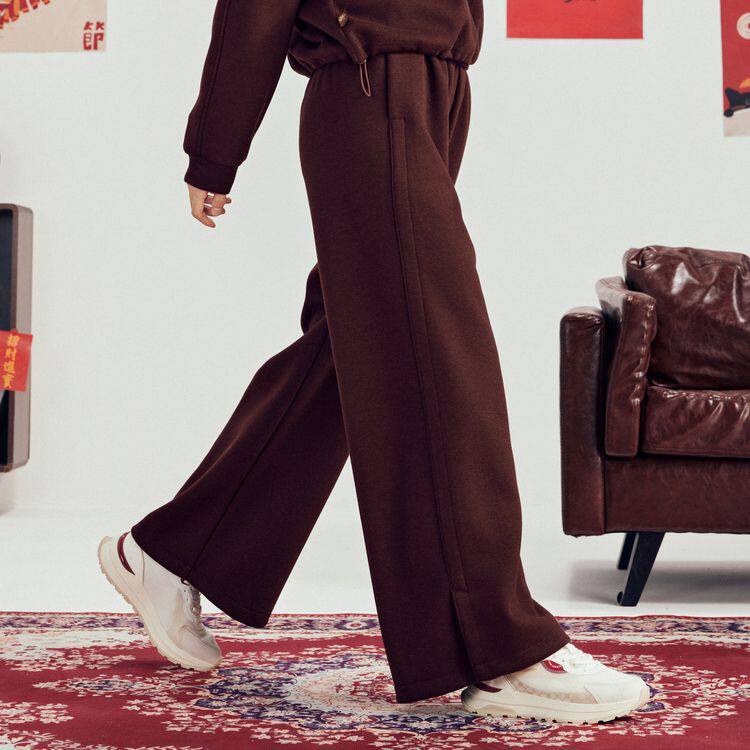 特步直筒裤Atomo Fafa女裤针织运动裤美拉德风长裤宽松阔腿休闲裤