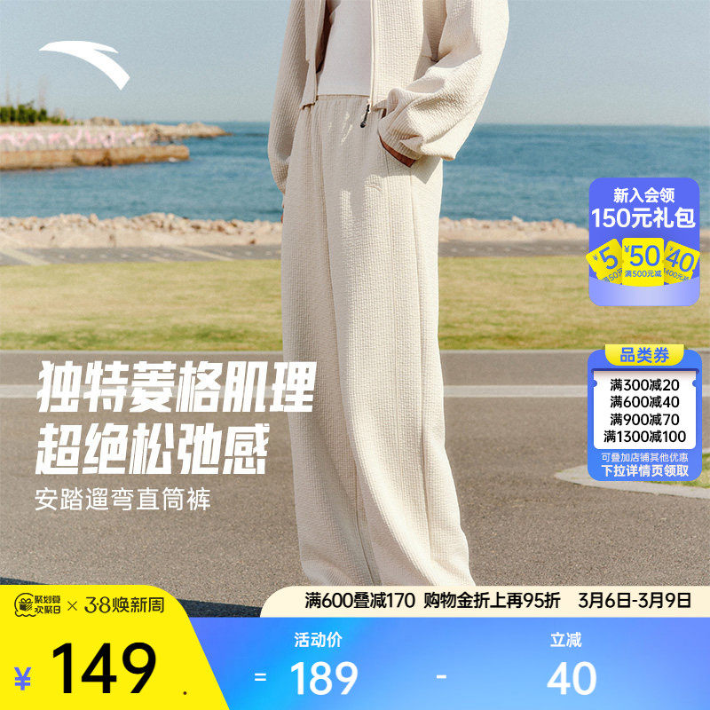 安踏自由裤丨直筒裤慵懒风休闲长裤女裤春季设计感肌理宽松阔腿裤