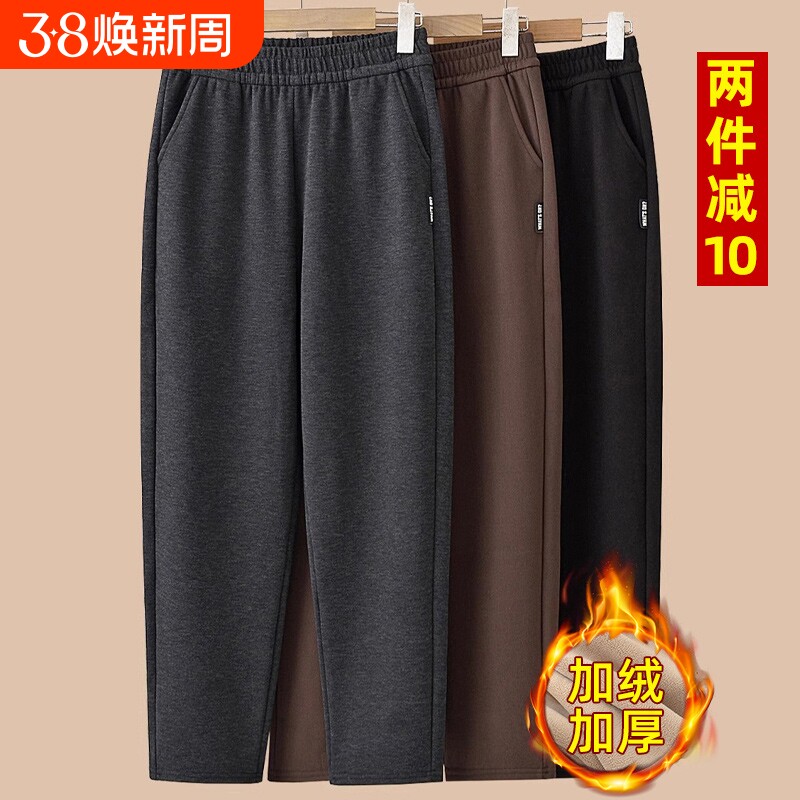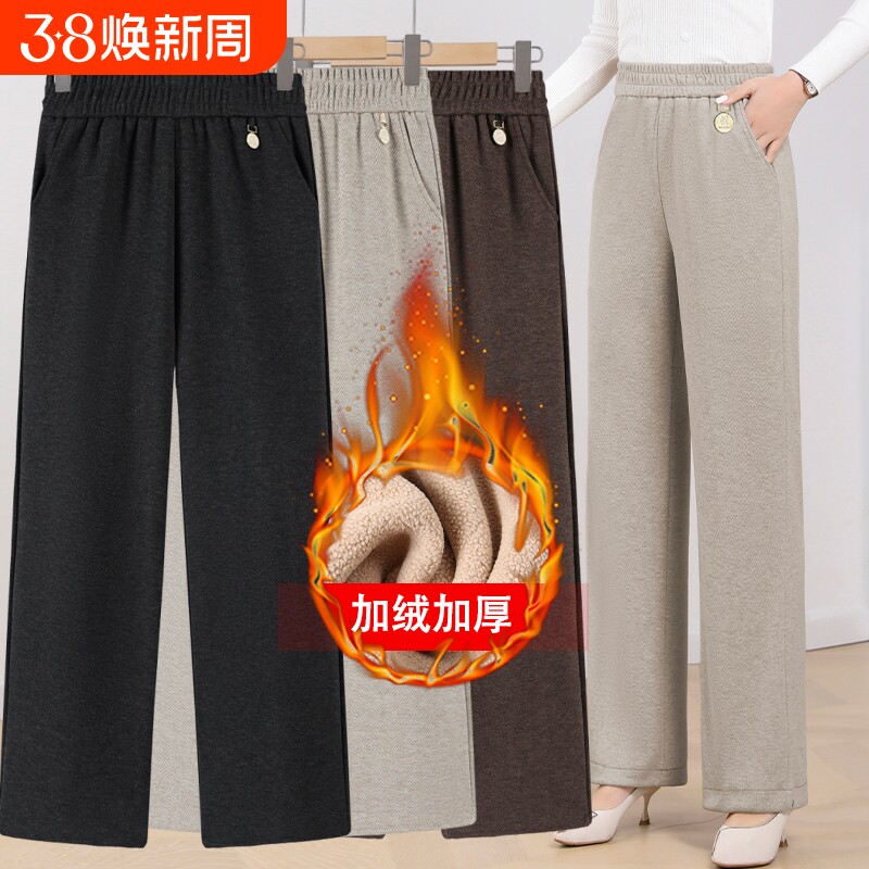 中年妈妈裤子秋冬加绒加厚中老年女裤保暖直筒裤宽松高腰休闲长裤