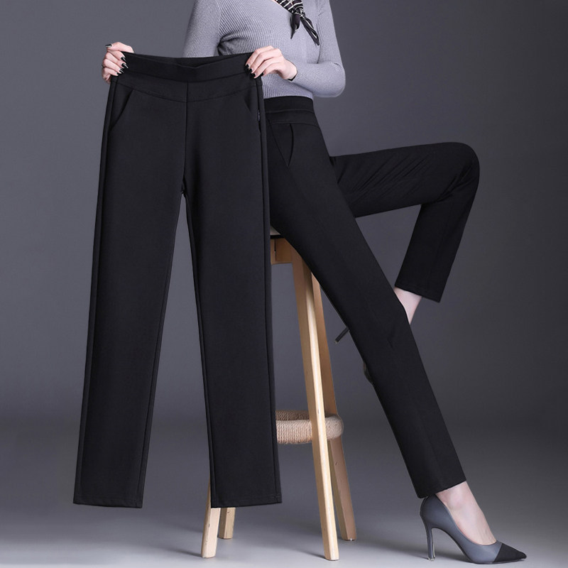妈妈裤子女秋冬加厚高腰弹力直筒休闲长裤外穿显瘦中老年加绒女裤