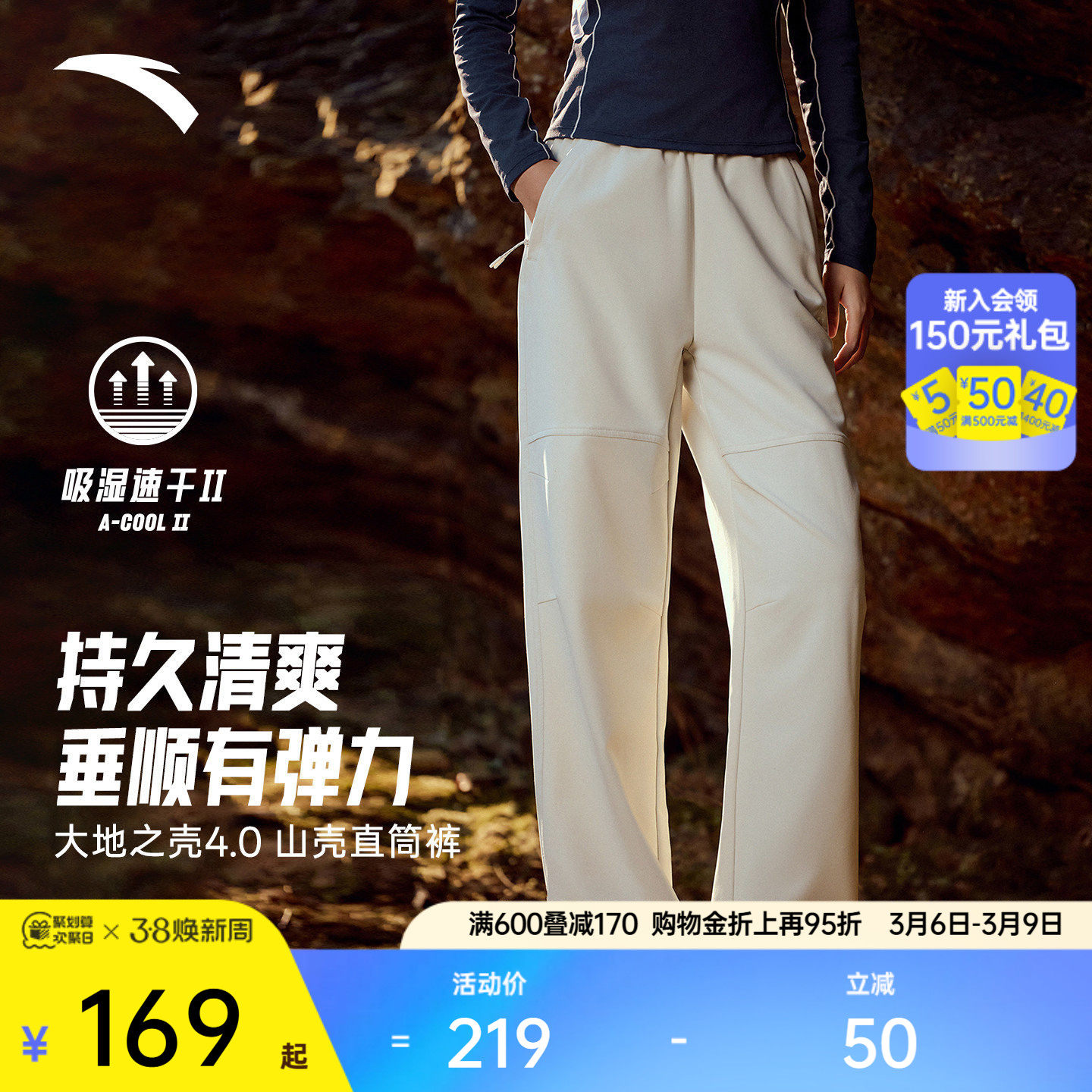 安踏山壳裤丨大地之壳运动长裤女裤春季户外直筒软壳裤登山伞兵裤