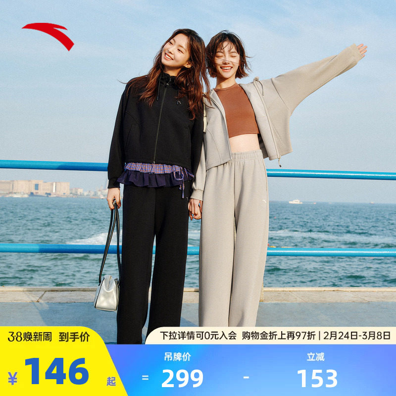 安踏遛弯裤女裤2026春夏季直筒阔腿裤针织运动长裤百搭宽松卫裤