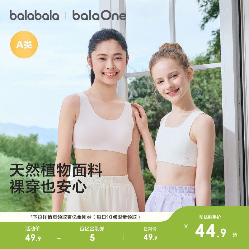 巴拉巴拉女童内衣发育期儿童小背心文胸防凸点防走光高弹透气学生