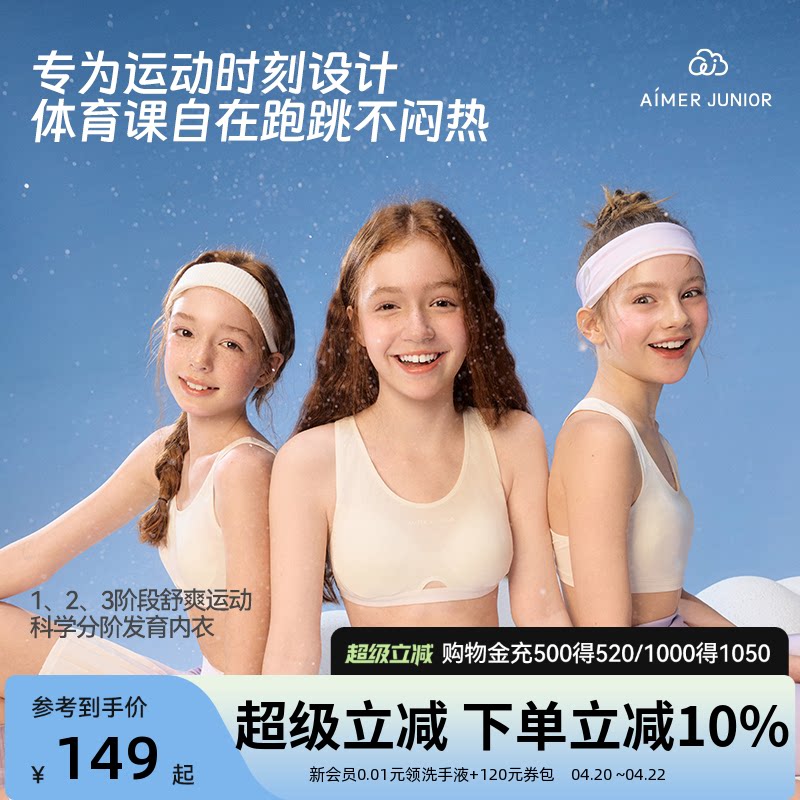 爱慕少女运动文胸女孩一二三阶段发育内衣吸湿速干学生体育课背心