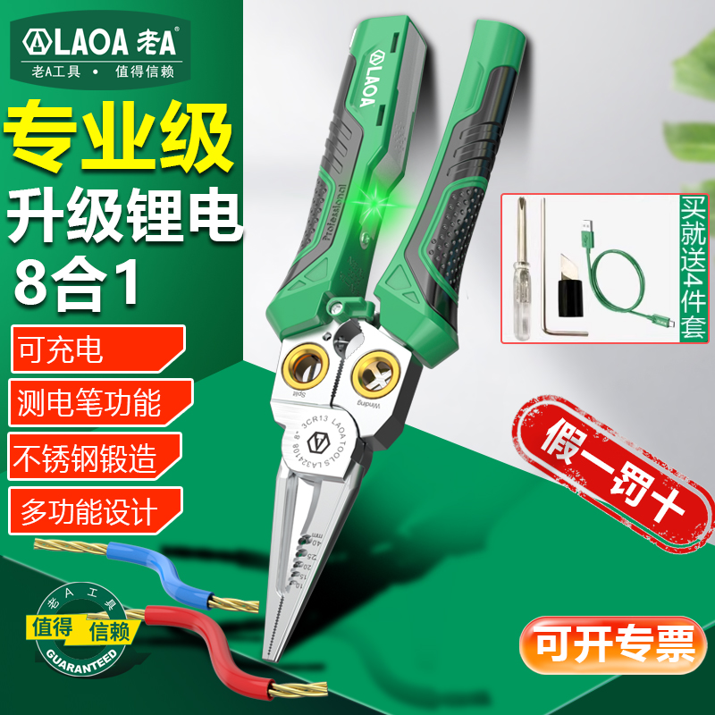 老A 新款锂电剥线钳8合1多功能剪线拔线钳电缆剪压线电工专用工具