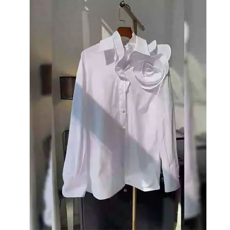 Halo Luu高级感白色衬衫女秋季上衣大版宽松慵懒风外套中长款衬衣