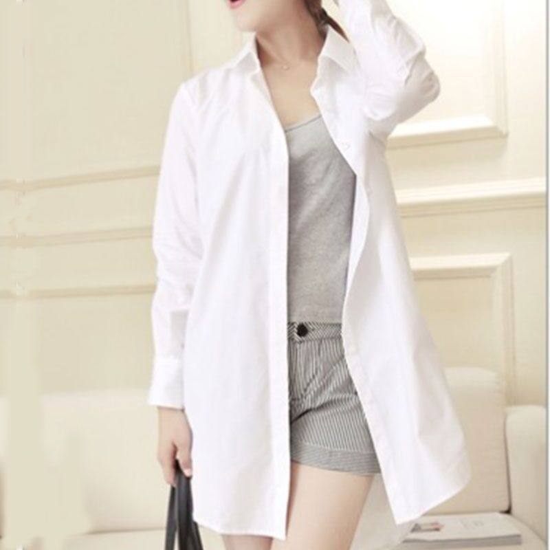 白衬衫女2018春秋新款长袖宽松韩版百搭大码女中长款BF打底衬衣寸