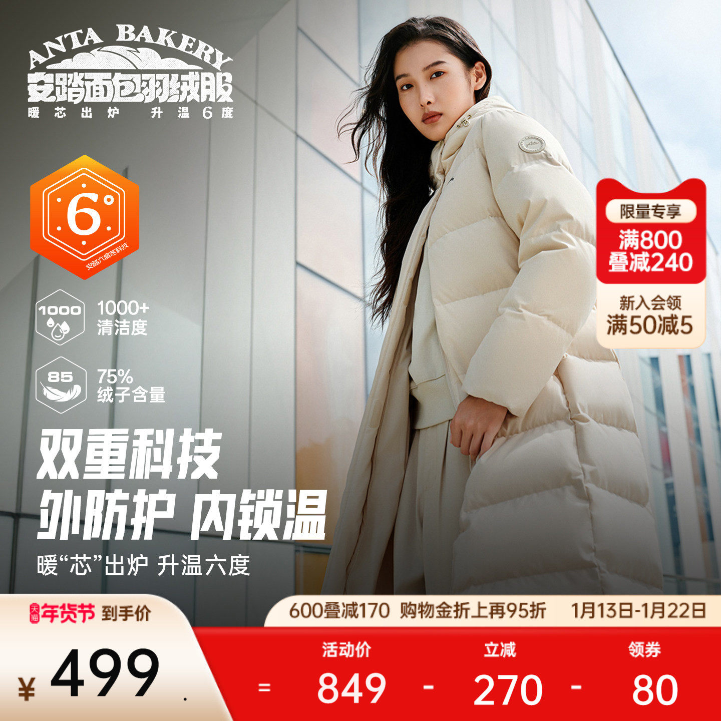 安踏面包羽绒服丨防泼水长款鸭绒外套女士冬季加厚保暖棉服面包服