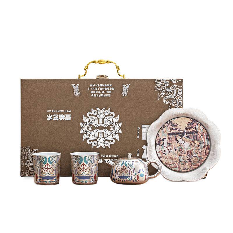 金镶玉功夫茶具陈德生敦煌鎏银一壶两杯小套装高档送父亲长辈礼物