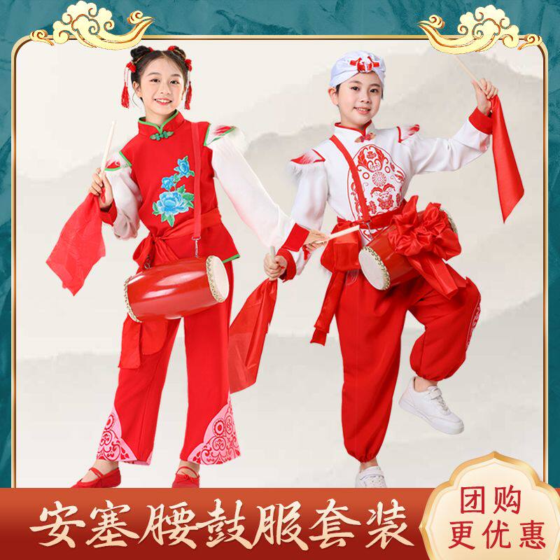 儿童安赛腰鼓服装王小二陕西陕北舞龙打鼓服中小学生秧歌演出服装