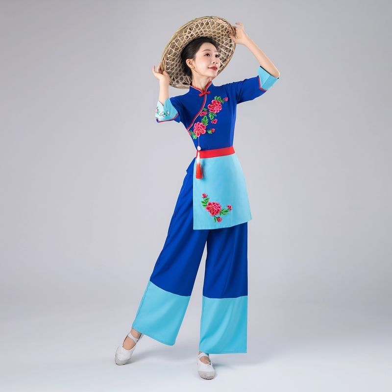 秧歌演出服装成人女民族风斗笠舞蹈演出服2024新款采茶舞演出服装