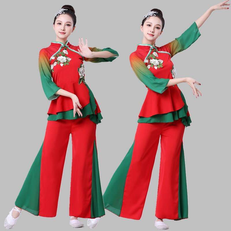 秧歌舞蹈服装新款套装古典舞演出服女飘逸民族广场扇子舞现代独舞