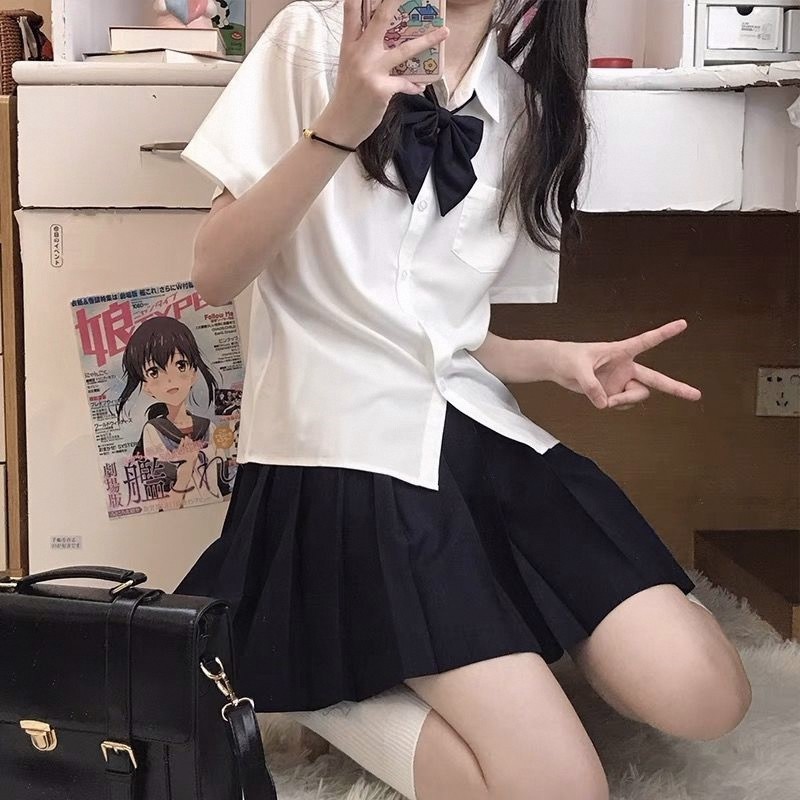 2022夏季新款衬衫女学生韩版宽松百搭jk蝴蝶结制服时尚上衣套装裙