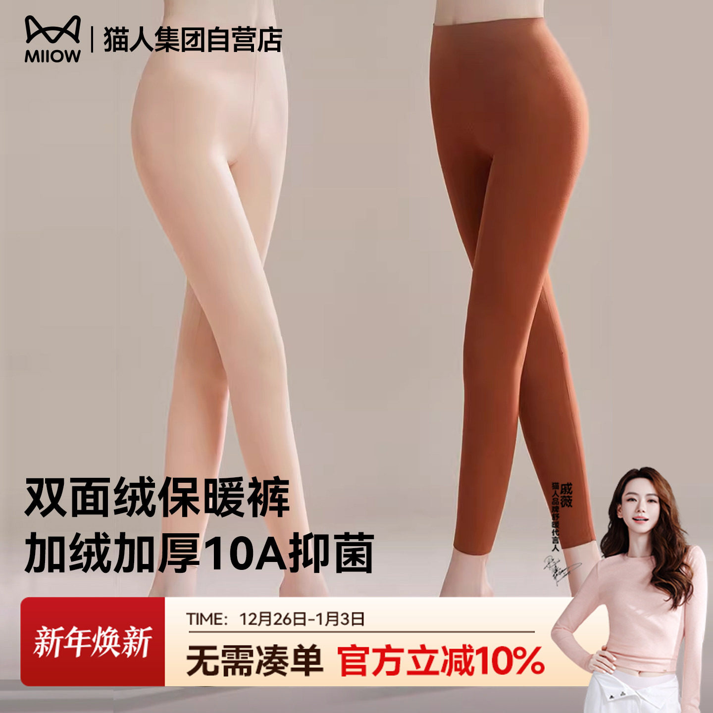猫人秋裤女款保暖裤新款加绒打底裤女秋冬季纯色无痕贴身10A抗菌