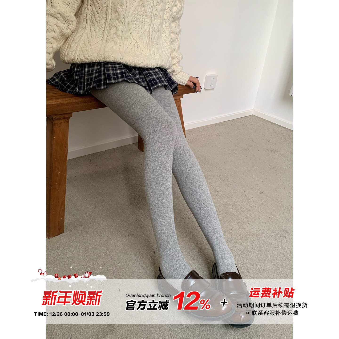 春秋冬季金棉浅灰黑色丝袜烟灰打底连脚袜显瘦哑光不加绒打底裤女