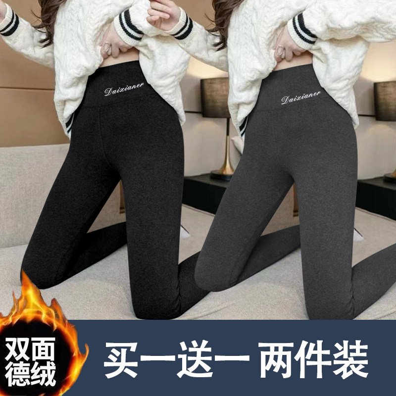 加绒打底裤女内搭外穿秋冬季加绒加厚无痕德绒高腰保暖裤洋气外穿
