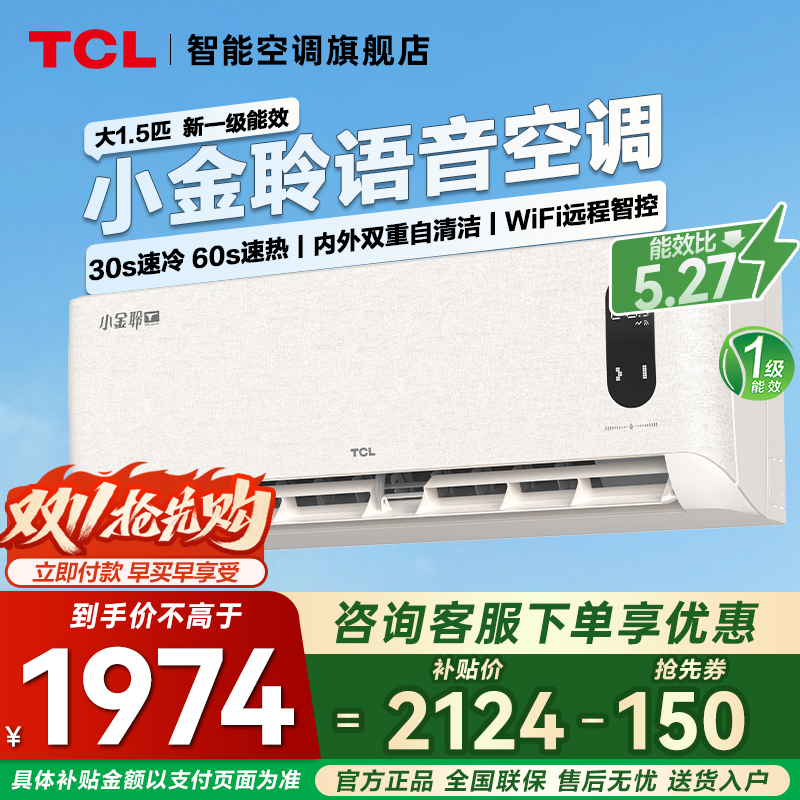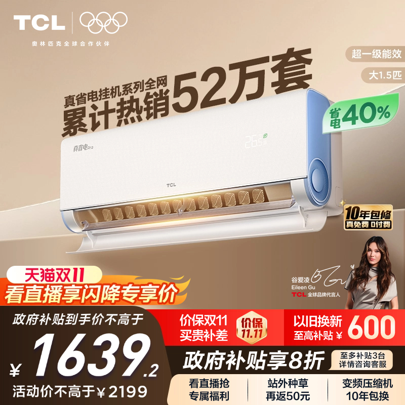 政府补贴TCL空调大1.5匹真省电air挂机1级能效冷暖家用官方旗舰店