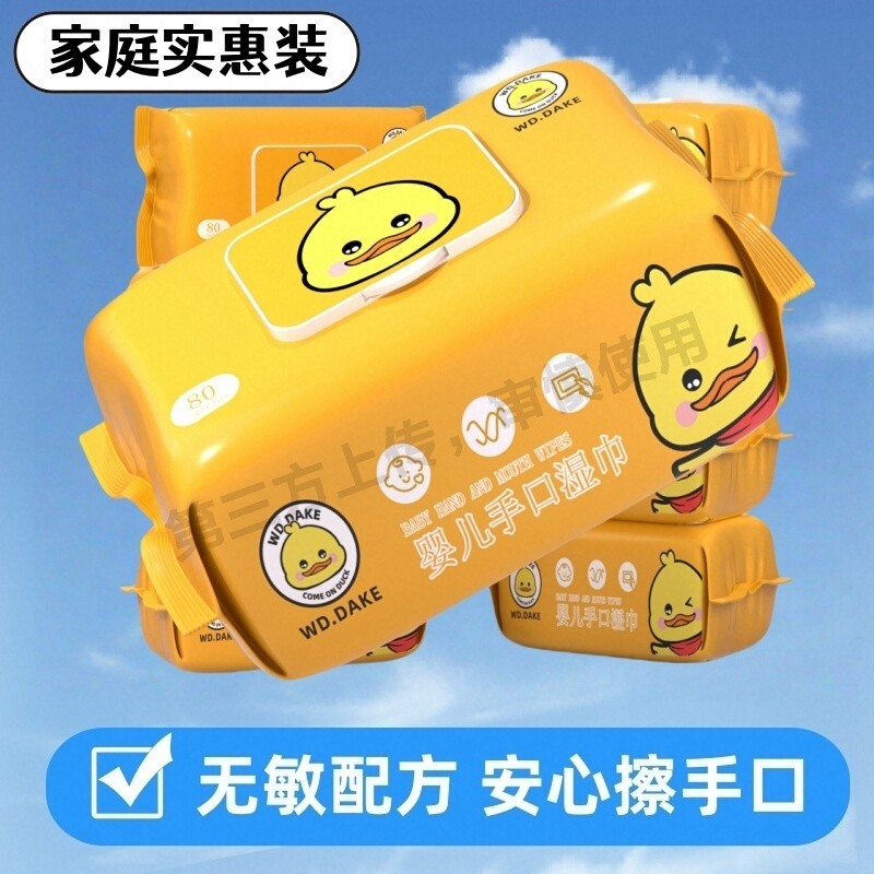 小黄鸭婴儿手口湿巾家用大包加厚实惠装便携新生儿专用宝宝湿巾纸