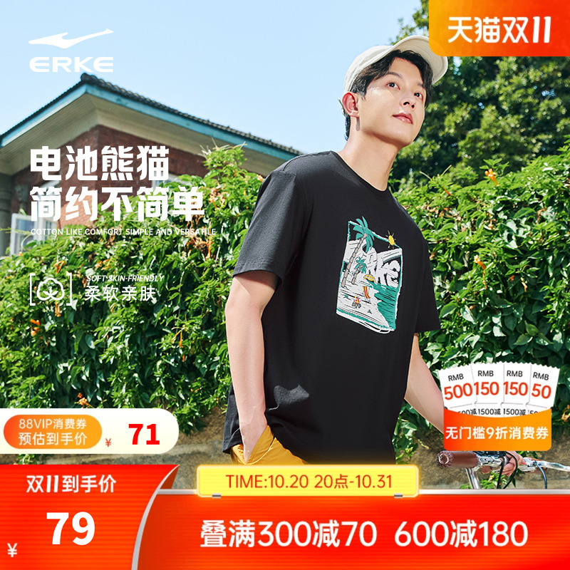 电池熊猫丨鸿星尔克t恤夏季新款男女情侣款纯棉透气宽松男士短袖