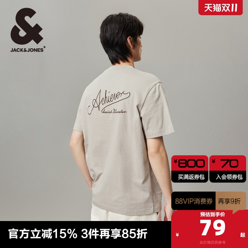 杰克琼斯男士短袖T恤男款男装2025年夏季新款刺绣纯棉情侣装纯色