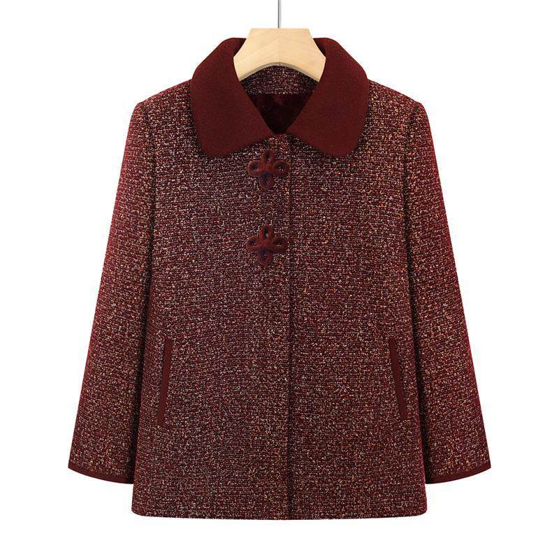 奶奶毛呢外套女士老年人新款冬装加绒加厚翻领上衣妈妈新中式呢子