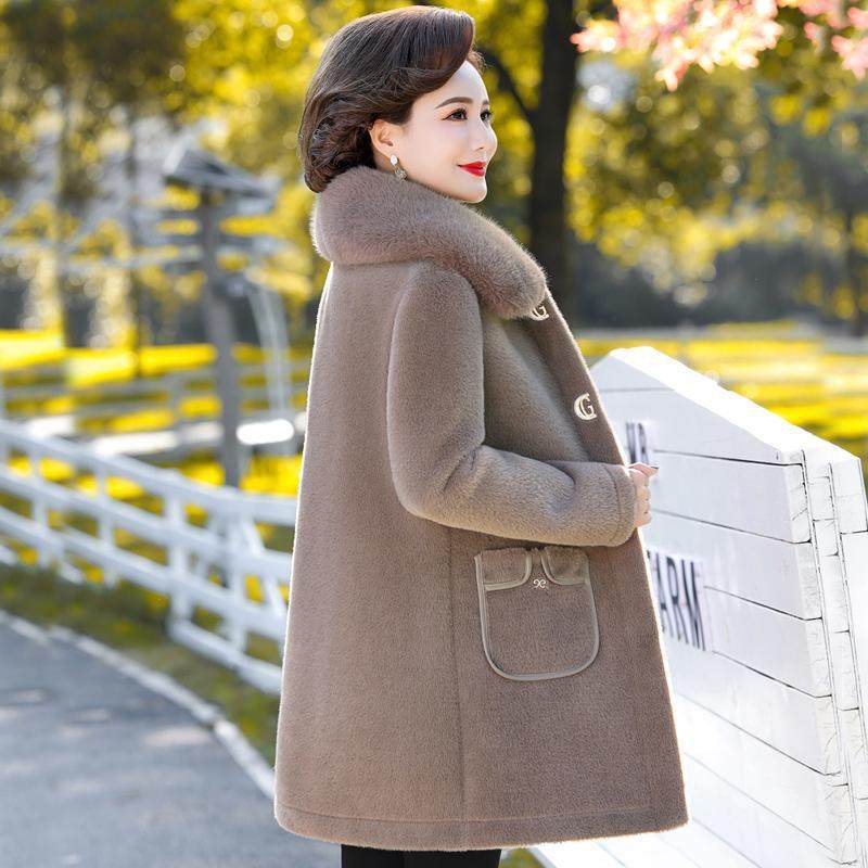 妈妈秋冬高贵毛呢外套洋气水貂绒大衣中长款中老年女冬装气质棉衣