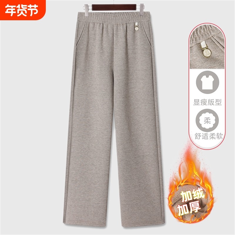 奶奶冬装洋气加绒毛呢直筒裤中老年女春秋妈妈长裤加厚休闲裤黑色