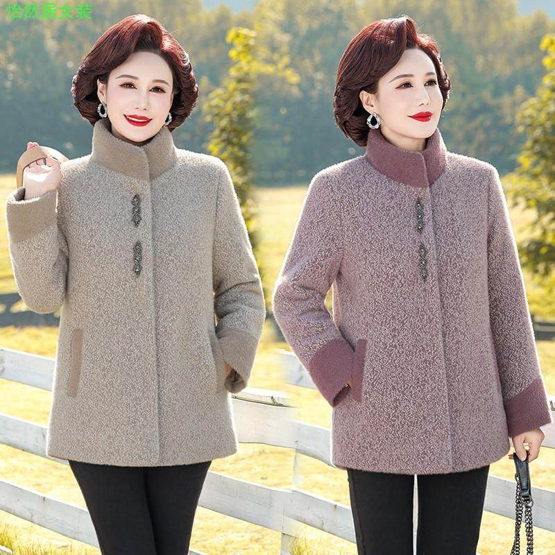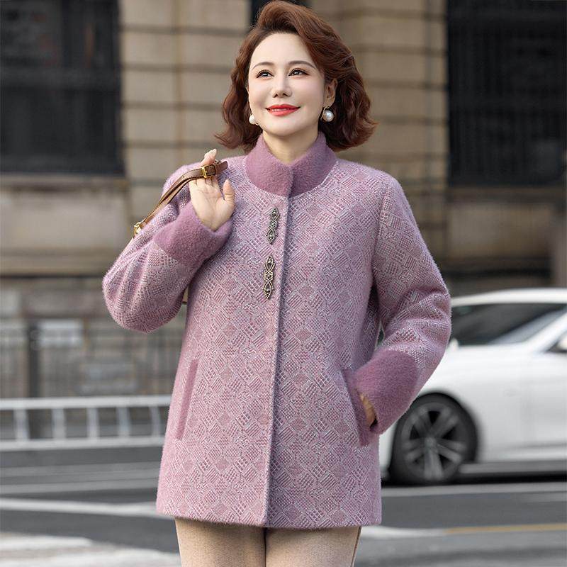 中年妈妈秋冬装毛呢外套2025新款洋气中老年女装春秋针织上衣夹克