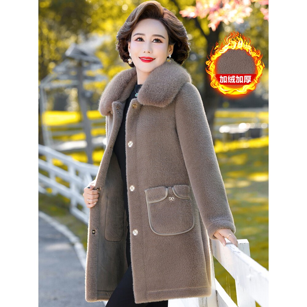 妈妈冬装加绒加厚水貂绒外套保暖中老年女人2025新款加棉毛呢大衣